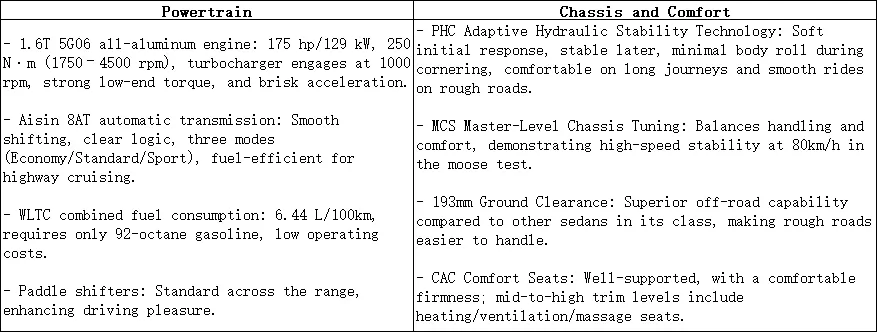 - Assistência ao condutor de nível 2 (modelos de especificações médias a avançadas): Controlo de velocidade adaptativo em toda a velocidade, assistência à manutenção na faixa de rodagem, reconhecimento de sinais de trânsito.