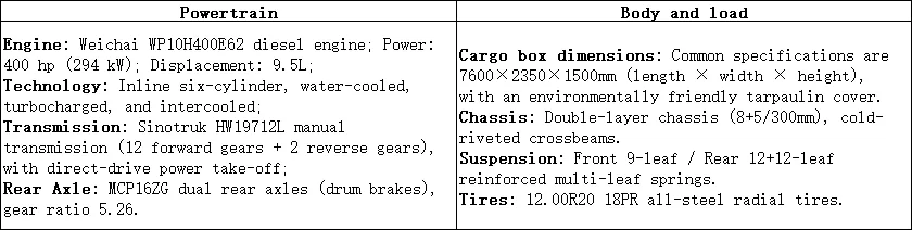 O caminhão basculante de resíduos de construção Howo TX 8 × 4 (versão verde e ecologicamente correta) é um caminhão basculante especial para o transporte de resíduos de construção, atendendo aos requisitos de transporte de resíduos de construção ecologicamente correto.