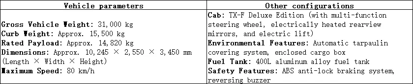 Posicionamento do veículo: Caminhão basculante dedicado para transporte de resíduos de construção urbana, atendendo aos requisitos de proteção ambiental para transporte de resíduos de construção