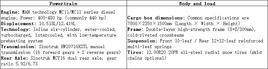 Caminhão basculante Howo T7H 8×4 (Polar Edition / Cold Region Edition), caminhão basculante de engenharia, versão especial para regiões frias, adequado para cenários pesados, como mineração e construção de infraestrutura.