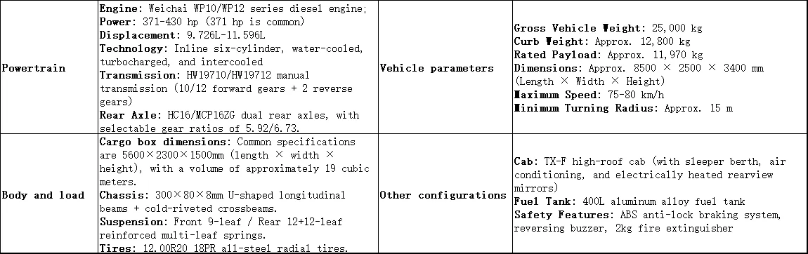 Tipo de veículo: Caminhão basculante de construção, adequado para transporte de caminhões basculantes, construção de infraestrutura e outras aplicações semelhantes.